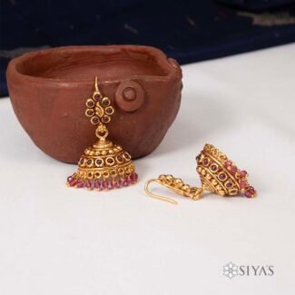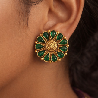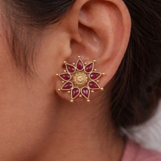 A bold floral elegant ring with red stones. Traditional, eye-catching, and perfect for festive wear.