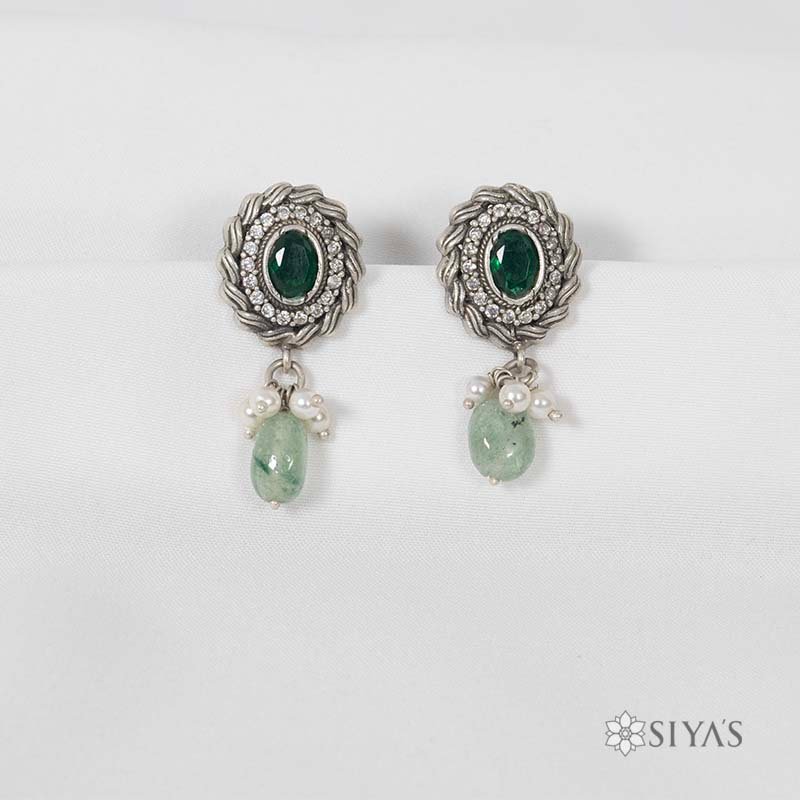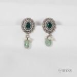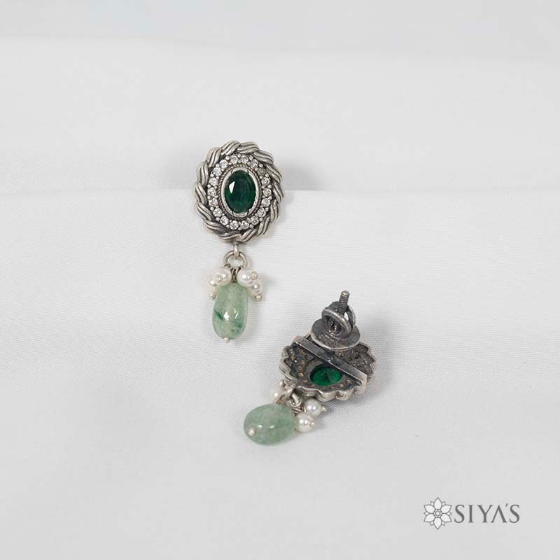 Green stone studs with pearl and green drop